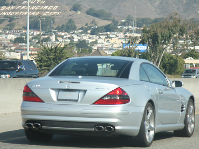 Saw Steve on US-101 North heading towards San Francisco, driving his Mercedes-Benz SL55 AMG without license plates.
