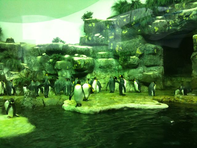 An indoor penguin tank at the Moody Gardens Aquarium in Galveston, TX.