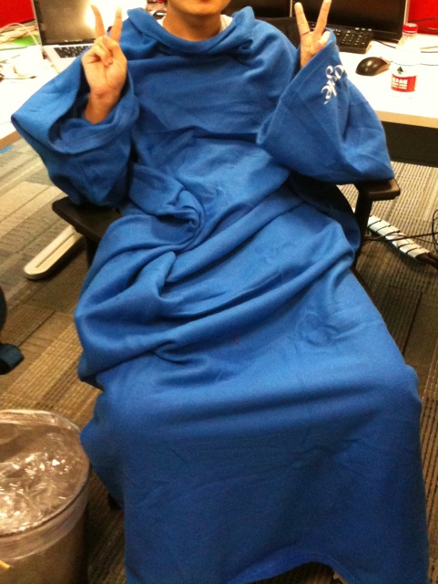 A blanket with sleeves. Perfect, for 懒人 like me. Picked it up in the office today but right now isn’t the right season to use it.